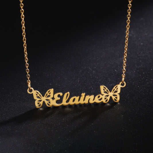 Customizable Name Titanium Steel Necklace with Birth Month Flower