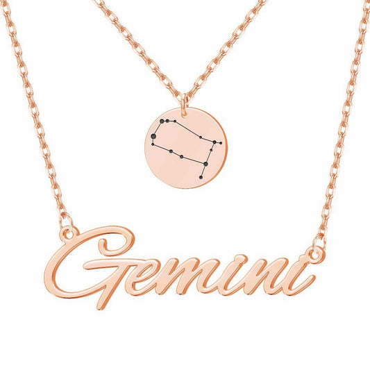 Customizable Zodiac Sign Necklace - Stainless Steel Layered Pendant