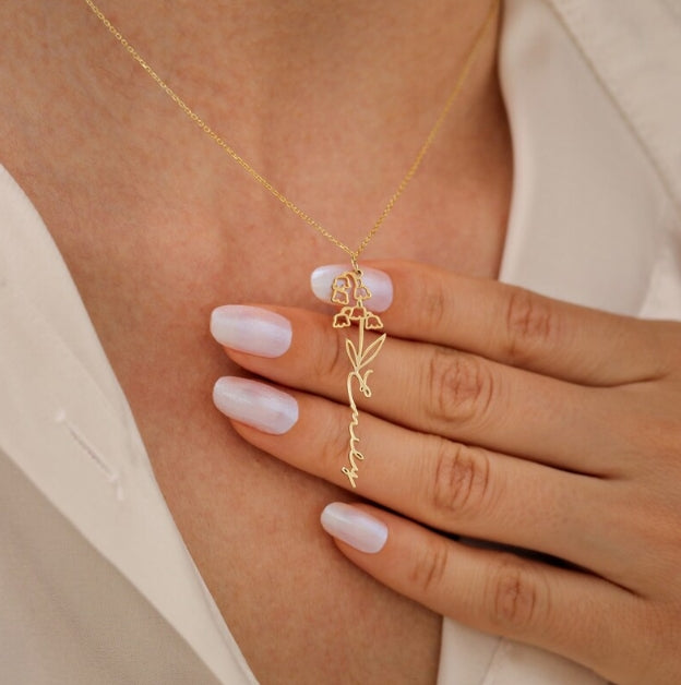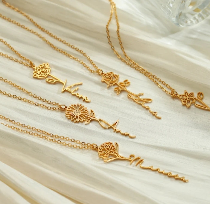 Customizable Name Titanium Steel Necklace with Birth Month Flower
