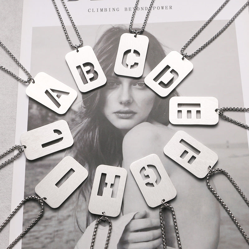 Durable stainless steel dog tag necklace with strong box chain and your choice of initial.