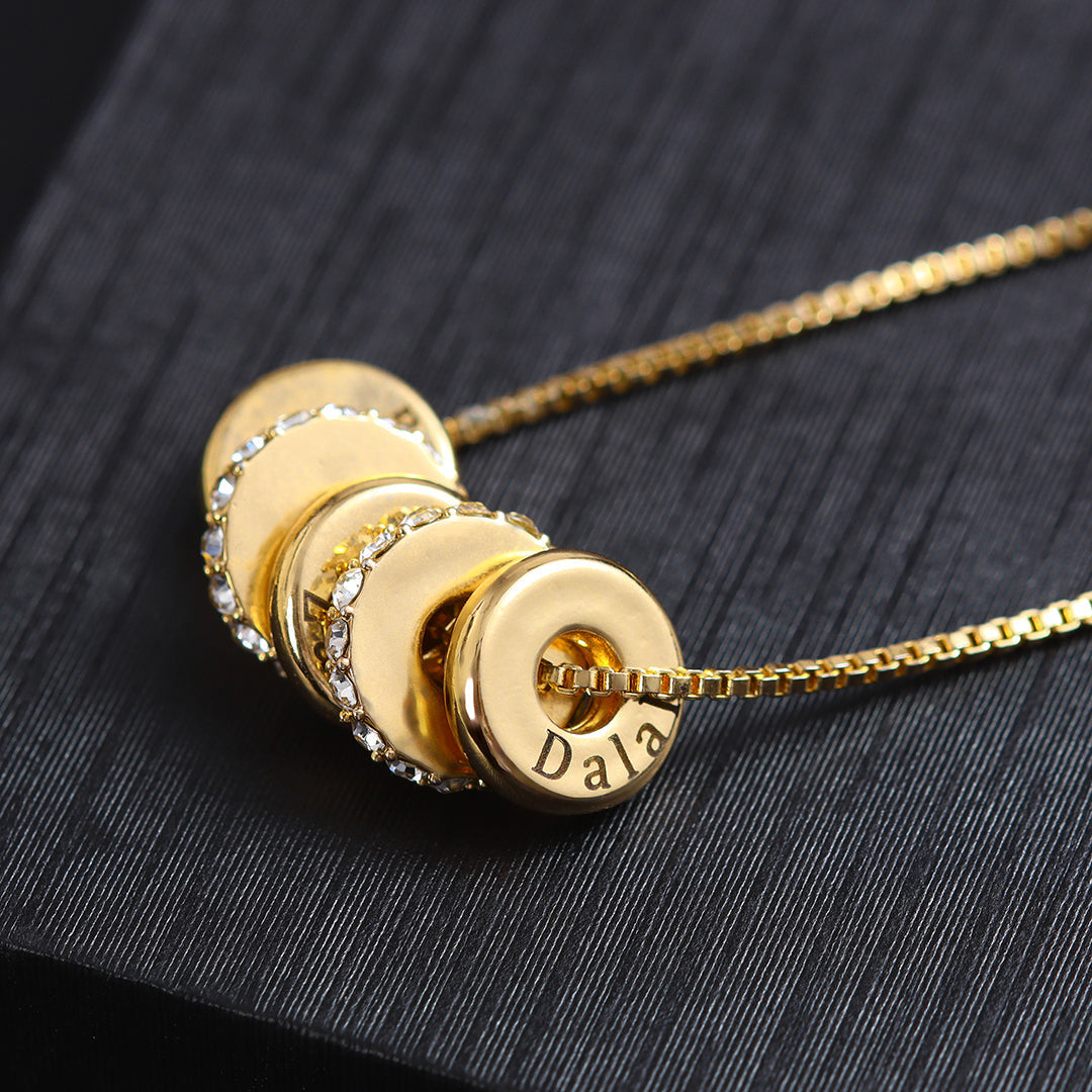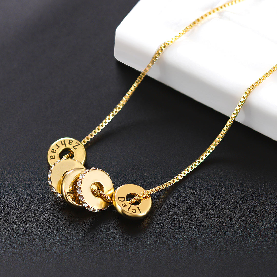 Harmful chemicals in soaps can dull your personalized jewelry. Avoid wearing your necklace, bracelet, or rings while showering.